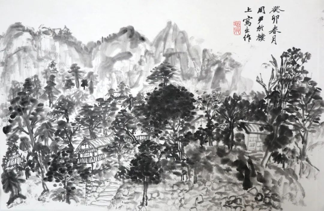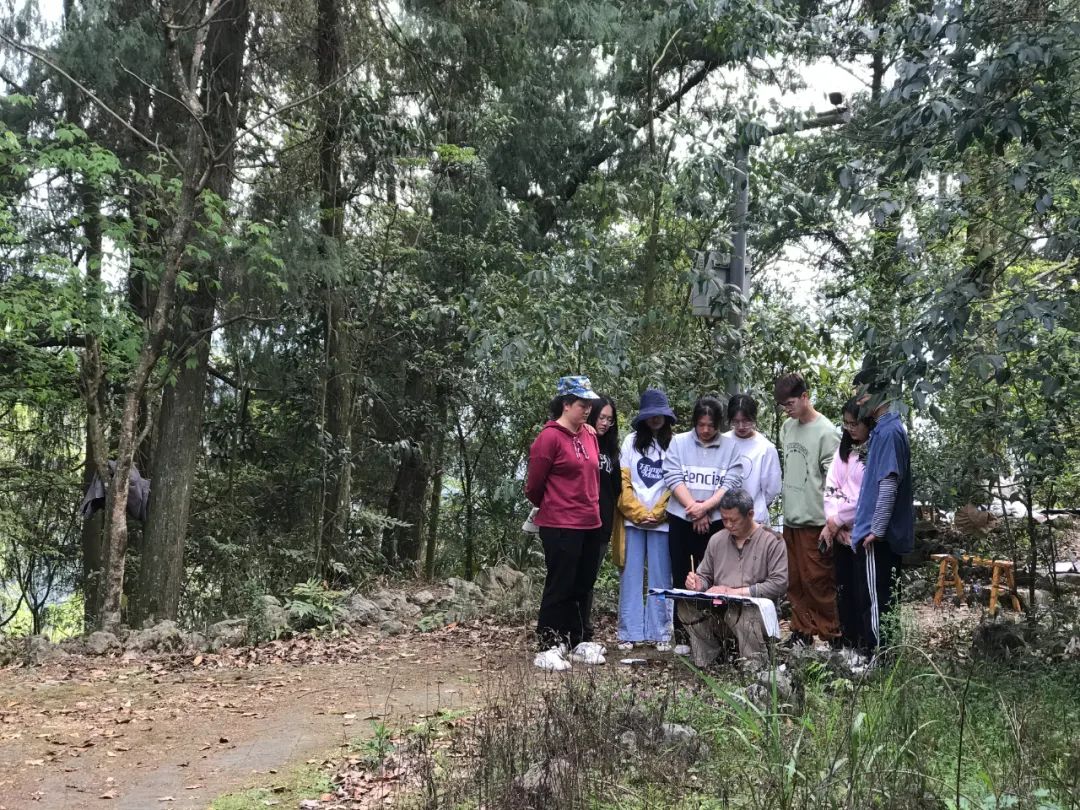 写生之旅很快到来,大家兴致勃勃,期待着这次外出。或许是太久未画,亦是基础掌握不牢,才导致来到现场不敢下笔。全然忘记需要注意的问题,整体的构图,树木、山体的位置,墨色的浓淡干湿,整体的气韵生动。总害怕画错,内心没有底气。而底气的来源于平时的临摹积累,都远远不够。就算之前掌握的一些笔墨技法,也没有灵活运用,脑子没有转起来。与此同时,心情也是十分低落,没有信心。但是,在这短短的七天内,不仅看见了山林和树木,感受到了大自然的美好,而且还学到很多东西,能够区分山水画和风景画;对房屋结构有了一些了解;选取不同的景物的运用;避免画面的散乱;从一种游走和俯瞰的视角来观看。让我不由得感叹写生很难,考虑的因素很多。