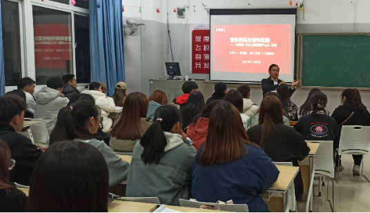 11月8日晚7点,原bv伟德国际1946艺术学院党委书记,现bv伟德国际1946教育学院党委书记,三级教授崔德虎老师,以自己创作《壮士血染困牛山》的全过程为例,在美术楼204教室为我院师生开展了《音乐采风与创作实践》为主题的学术讲座。