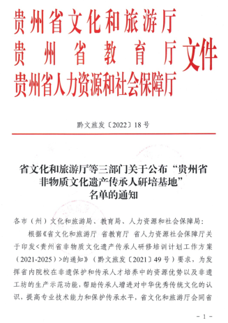 2022年5月5日,省文化和旅游厅、教育厅、人力资源和社会保障厅联合发文(黔文旅发〔2022〕18号),公布了本年度贵州省非物质文化遗产传承人研培基地名单,bv伟德国际1946作为高等院校培养基地,赫然在列。