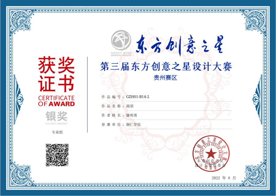近日,我院视觉传达设计专业老师滕明勇副教授收到第三届东方创意之星设计大赛贵州赛区银奖的获奖证书。