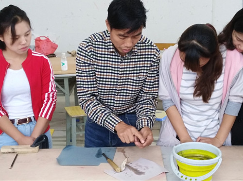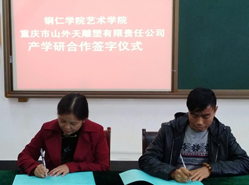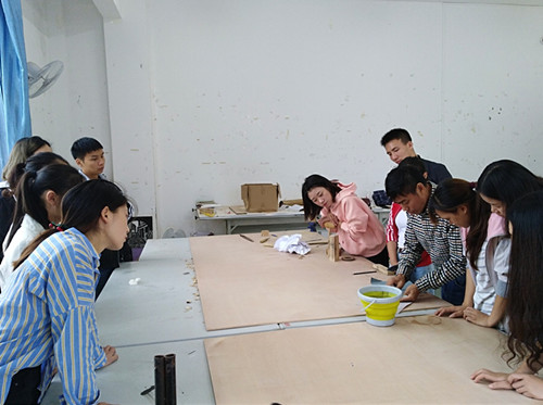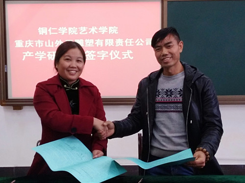 近日,通过相关负责人对重庆山外天雕塑有限公司进行了多方面考察、合作、沟通,伟德官网艺术学院美术与设计系与该公司达成了校企合作共同打造“旅游商品”木雕特色课程,达到产教融合、共同促进发展的产学研合作意向。艺术学院院长李洁教授代表学院和重庆山外天雕塑有限公司董事长周宫平工艺大师签署了校企合作产学研协议,并特聘重庆山外天雕塑有限公司董事长周宫平工艺大师为该客座教授。期间,周宫平工艺大师为了提高同学们对于木雕艺术的学习兴趣,作了题为《用木艺美化生活》的精彩专题讲座,讲座内容首先从木艺的概念、分类开始,其次介绍了木材肌理之美、纹路之美、天然之美、造型之美、功效之美、适用之美等木材特性,再深入讲解了木雕步骤:选材→设计→打胚→粗雕→精雕→打磨→上蜡→成品的创作过程,其后,简介了基本的雕刻刀法以及雕刻所需准备的相关工具和辅料。在同学们《旅游商品》专业阶段课程中周宫平大师对同学们的实际操作学习进行了现场指导,还根据现有的材料创作了雕刻作品,现场教学演示结合理论知识给同学们讲解了木雕艺术的技法,培养了同学们对于木雕艺术浓厚的学习兴趣,增强了学习信心。