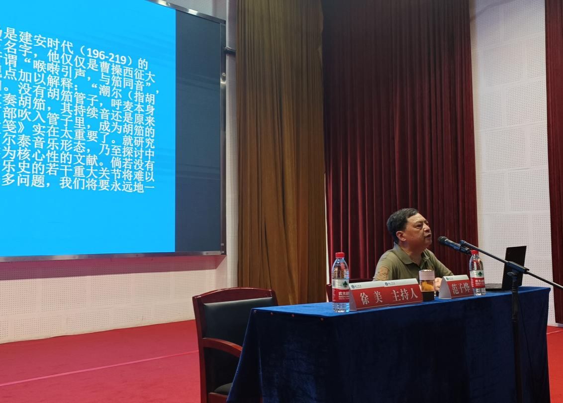 讲座中,范子烨研究员围绕潮尔艺术、呼麦的起源与发展、呼麦学习和舞台实践等方面展开讲述。同时,强调潮尔中歌唱技巧和情感表达的和谐统一,鼓励学生在学习和实践中不断创新探索,以提升个人的创造力和艺术表现力,要结合中国传统文化,积极传播中国正能量。他还分享了许多精彩的呼麦演出视频,有演唱经典唱段、艺术歌曲等,运用娴熟的技巧、细腻的表现,展示呼麦唱法所带来的艺术魅力。