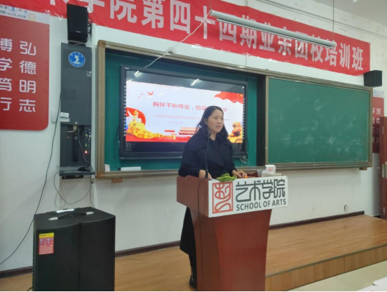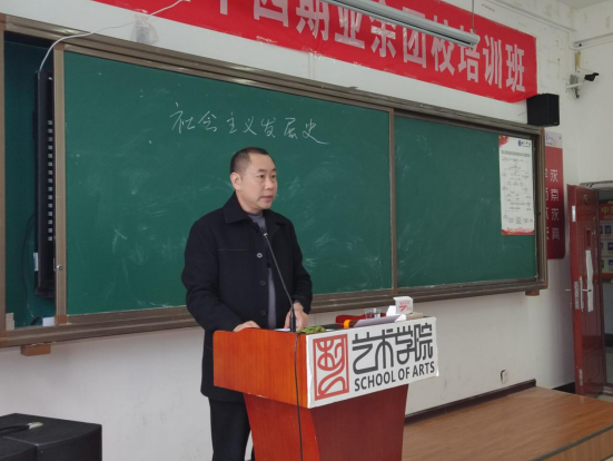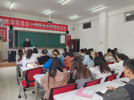为使我院共青团员更加充分地了解社会主义发展历史以及中国共产党发展的光辉历程。11月3日,艺术学院在美术楼201教室开展业余团校第四十四期培训活动。本日培训由艺术学院副院长谢云中老师、党务科副科长张和飞老师进行专题讲座,70名学员参加培训。