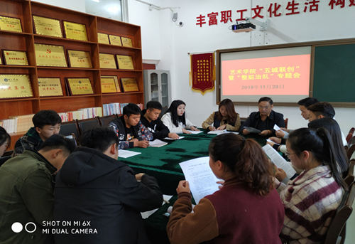 为积极响应铜仁市“五城联创”建设,同时针对我院近期卫生情况为全院师生创建良好的学习环境。2018年11月28日下午17:00艺术学院在党员活动室召开“五城联创”暨“整脏治乱”专题会。参加会议的有艺术学院党委书记崔德虎教授、龙雪老师、艺术学院团总支学生会主席团、体育与劳动部全体成员及各班劳动委员,本次会议由崔德虎教授主持。