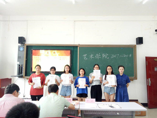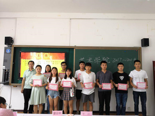 为了更好地推动我院学生工作良性发展;展现和回顾艺术学院在团学一学年的工作内容和收获;表彰和鼓励在学院各项活动中的先进个人和团体。2018年6月20日下午4:30,艺术学院在美术楼201隆重召开了2017~2018第二学期总结暨表彰大会。艺术学院副院长谢云中教授、学生科科长龙黎老师、团总支书记张少涛老师以及获奖代表、学生会全体学生干部们参加了本次期末总结表彰大会。此次会议由陈蓉主持。