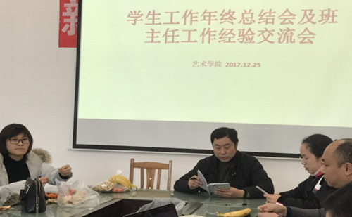 12月25日,艺术学院2017年班主任工作总结暨经验交流会在美术楼会议室举行,参加此次会议的有艺术学院前党委书记邹娟、艺术学院院长李洁、艺术学院副院长谢云中、艺术学院全体班主任。会议由谢云中副院长主持。首先,谢院长从学生安全工作、班级学风建设、学生发展等方面对2017年班主任工作做了系统总结,他指出:“班主任工作千头万绪,要做好这个工作,必须要具备三心二意,就是要有爱心、细心、耐心,服务意识、学习意识,这样才能当好班级的领头羊”。随后,各位领导和班主任就学生工作进行了经验交流,大家畅所欲言,各抒己见。首先,秦建星老师介绍了自己的班主任工作经验,她说,她当班主任已经有十几年了,认为要做好这份工作必不可少的是要用心去做,和学生以心交心。陈宏江老师认为,班主任工作应该要讲求方法,尤其是对班干部的管理,他认为,在班级管理中可以进行层级管理,班长对接班主任,其他班干对接班长,这样就可以简化工作,提高效率。其他各位班主任也交流了班主任工作的心得和困惑,邹娟书记针对有些班主任提出的困惑做了详细的解答,认为班主任工作首先要抓重点,其次是要对学生用心。李洁院长对班主任困惑也介绍了自己的经验,认为在学生管理中必须要细致用心,另外对学生要能够分类管理,例如:贫困生和后进生要进行分类管理。最后,谢院长对这次总结交流会作了最后的总结,认为此次会议大家都交流了心得,介绍了经验,对于我院班主任工作以后的开展能起到很大的帮助,这样的交流形式以后还要多开展。
