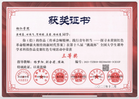 第十八届“挑战杯”全国大学生课外学术科技作品竞赛红色专项活动三等奖