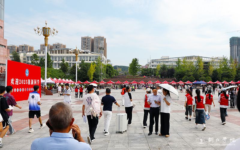 今年迎新工作主要在南大门和明德湖广场开展,现场布置井然有序。热烈欢迎2025级新同学”等标语鲜艳醒目,迎新帐篷分列整齐。各二级学院以及学生志愿者团队早早到位,热情等候每一位新生。2025级新生们带着对未来的期待与梦想走进校园,成为秋日铜院最动人的风景。