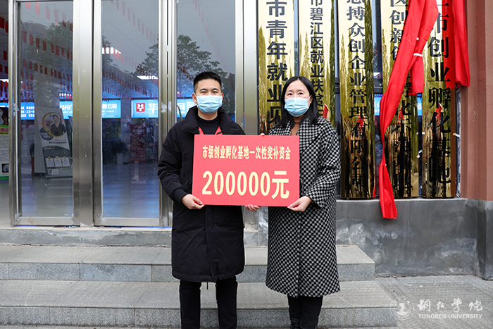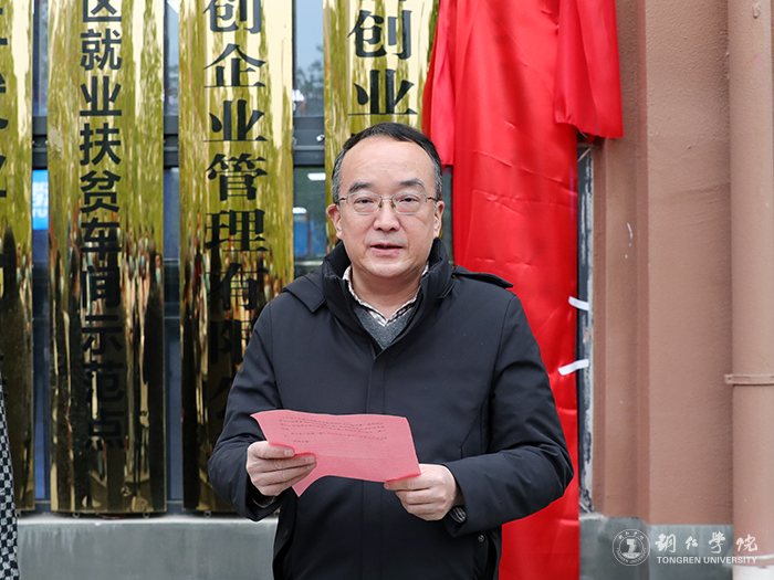 12月16日,“铜仁市创业孵化基地”挂牌仪式在伟德官网大学生创新创业孵化基地举行。伟德官网党委副书记代亮、铜仁市就业局局长甘馨方出席仪式并为基地揭牌。甘馨方为伟德官网创业孵化基地颁发“市级创业孵化基地一次性奖补资金”牌子。伟德官网招生与就业指导处处长杨艳主持仪式。铜仁市碧江区就业局有关同志,伟德官网创业孵化基地负责人、入驻企业代表、基地工作人员、师生代表等参加仪式。