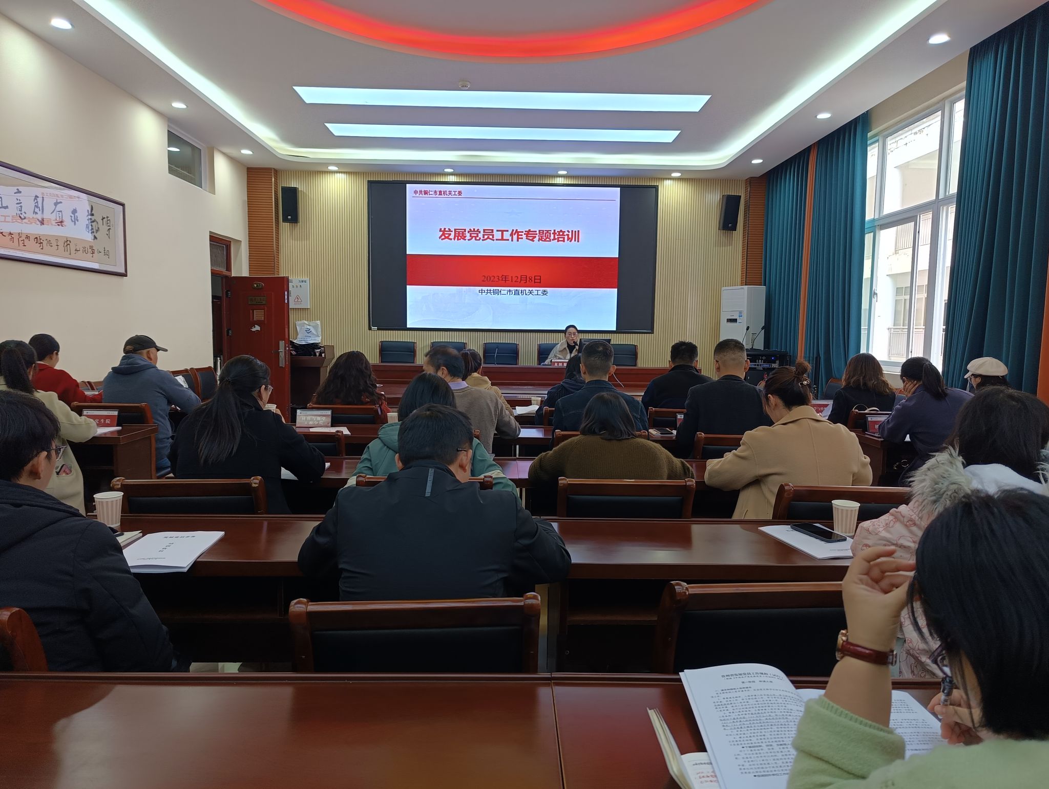 本次培训邀请了铜仁市直机关党校校长、市直机关工委组织部负责人龙朗黎同志授课,她重点围绕发展党员的5个阶段25个环节、发展党员的常见问题和解决办法、材料规范填写等方面进行讲授,针对性强,培训效果好。