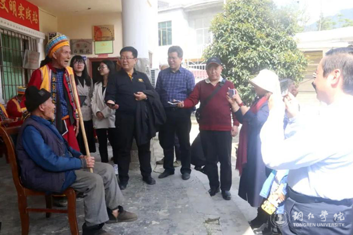 第一站,团队抵达沿河自治县中界镇,探访了当年红军在此驻扎,并且是贺龙与李达顺利会面的水田坝村,聆听了当年的红军故事以及当地脍炙人口的红军山歌。“东方红,太阳天,红旗插在大路边;红旗上面七个字:穷苦人民要翻身。”老人虽已年迈,但是在吟唱当年的红色山歌时还是非常精神,从歌声中感受到了老人对红军的感激之情。