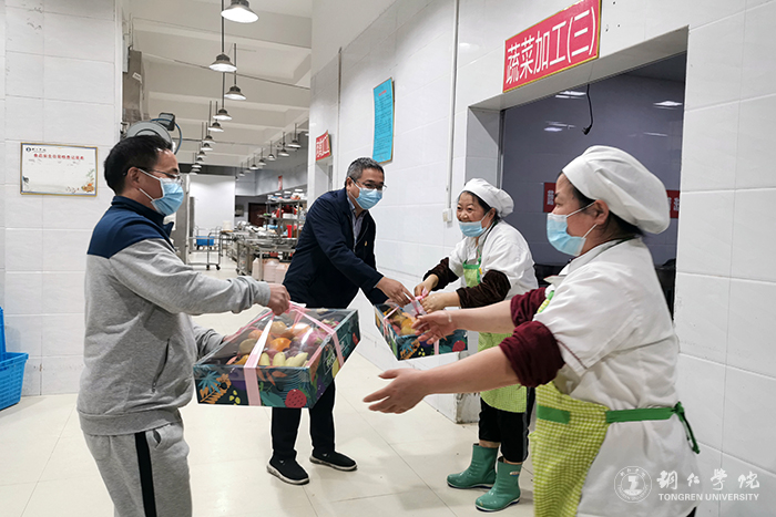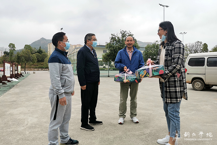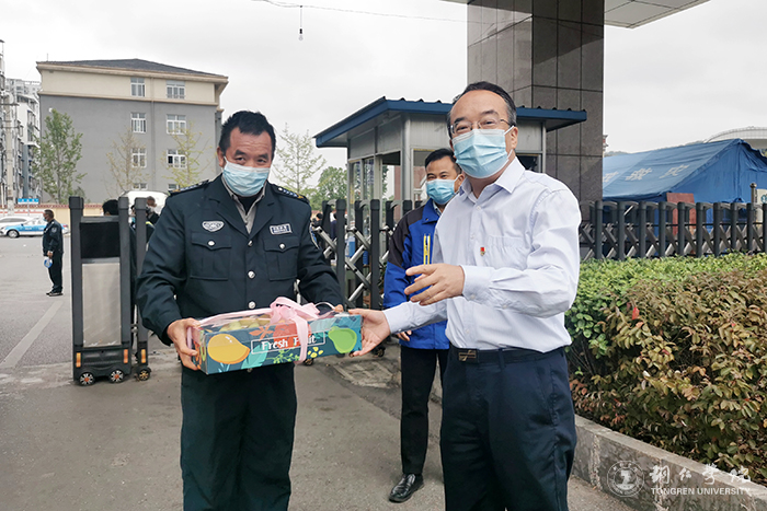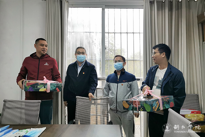 代亮、杨建、梁正海等一行还走访慰问了部分党组织、党员代表和退役军人志愿巡逻队、青年志愿服务队、疫情防控监督检查组以及大健康学院、保卫部门、后勤部门等,代表学校对大家的努力付出表示衷心感谢,并希望大家要继续坚守工作岗位,发扬优良作风,率先垂范,共同做好学校疫情防控和安全稳定工作。