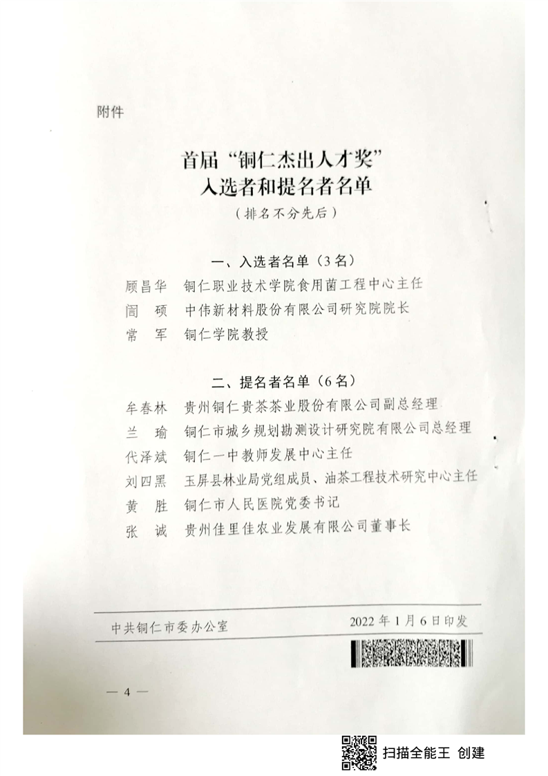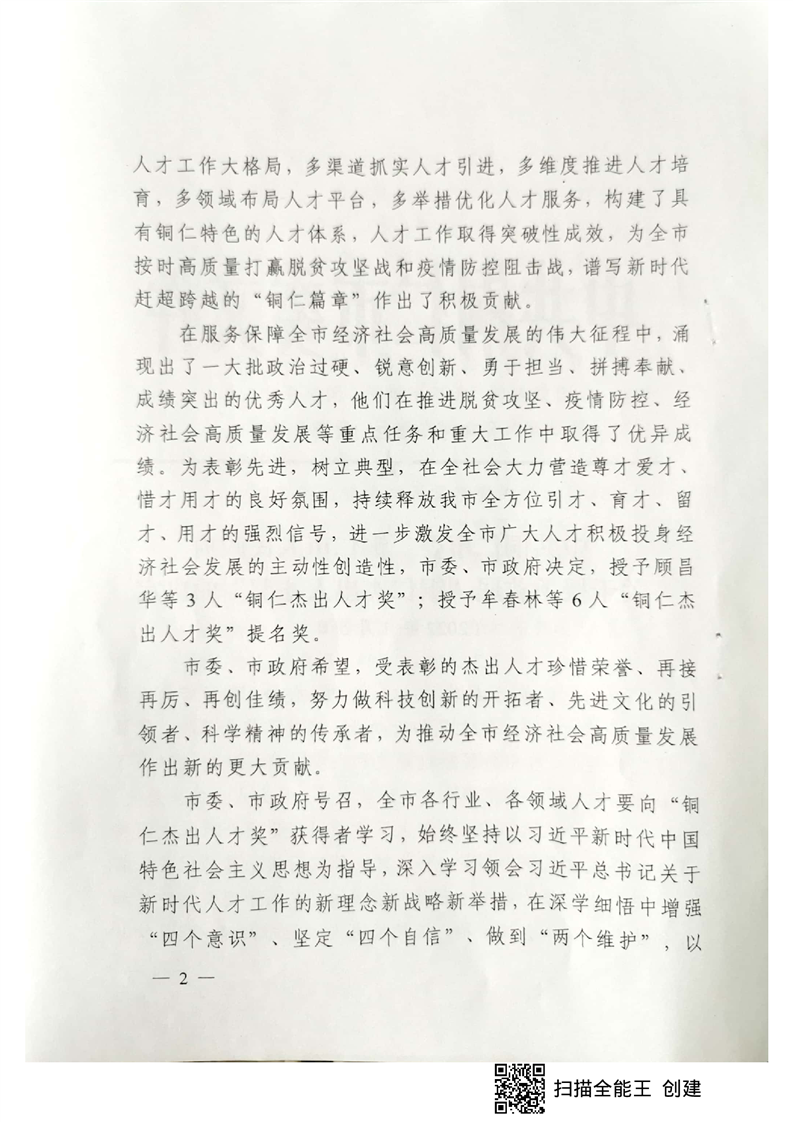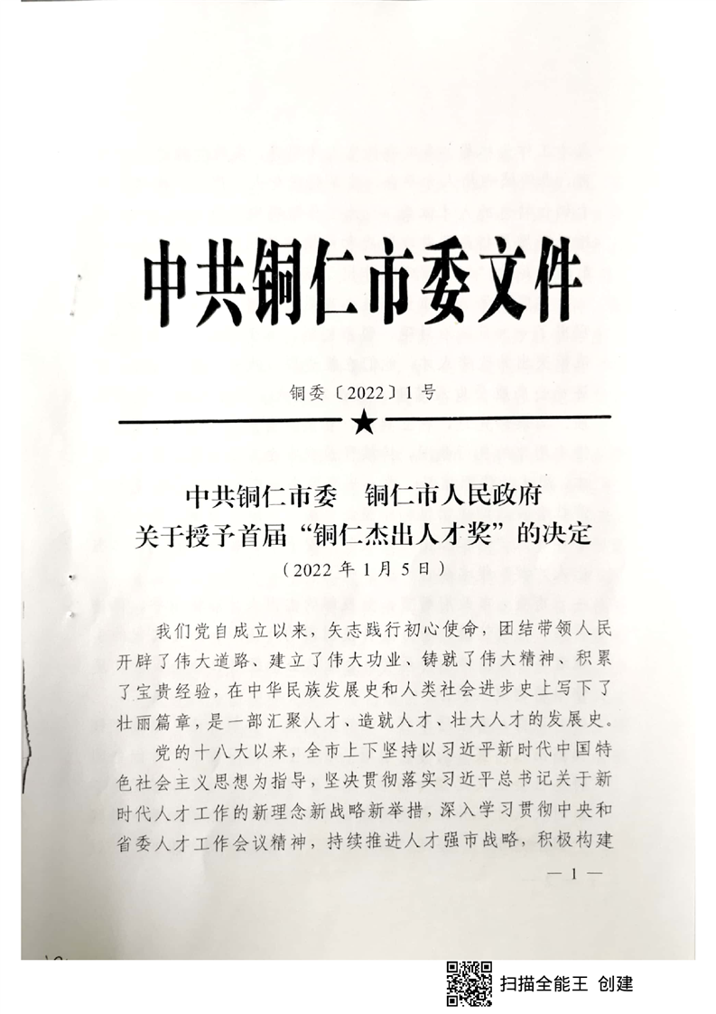 伟德官网常军教授获首届“铜仁杰出人才奖”