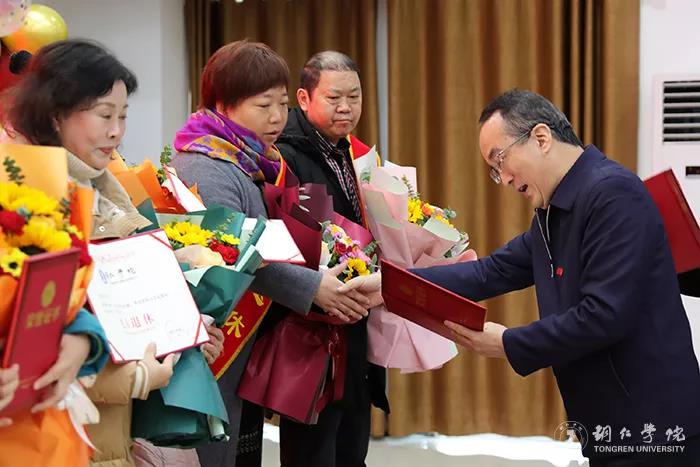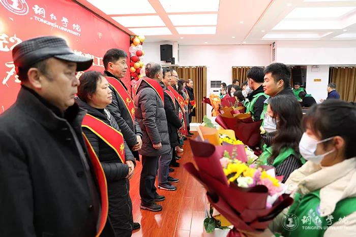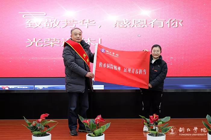 会上,播放了退休教职工工作业绩成果介绍视频;代亮、石维为退休教职工颁发了荣休证书;志愿者向退休教职工献花;退休职工代表向青年职工代表授予了“传承铜院精神 展现青春担当”红旗。