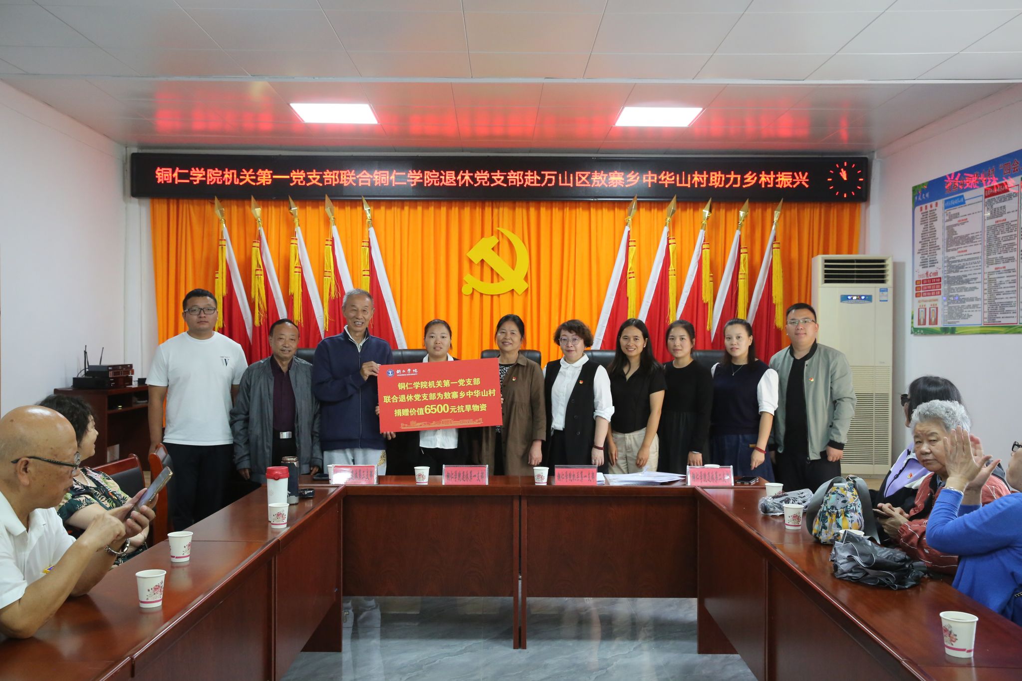 下午,一行人员与中华山村支两委召开座谈会。该村党支部书记刘丽华介绍了通过引进农业企业,规模化发展种植农业,当地农户利用土地流转、就近务工、参与村合作社分红等多渠道实现收入来源多样化。伟德官网退休第一党支部书记贾文凤谈到中华山村通过产业振兴带动乡村振兴,这是党委政府大力推动乡村发展的生动实践,看到农民生活欣欣向荣、乡村一片繁荣倍感喜悦和备受鼓舞。未来,将动员伟德官网退休教职工发挥智力优势到敖寨乡开展技术指导、购买农特产品等多途径解决乡村振兴过程中遇到的困难和问题。随后,伟德官网机关第一党支部王欣同志组织为中华山村捐赠抗旱物资活动,有效解决该村居民用水安全和用水困难问题。刘丽华书记对bv伟德国际1946在乡村振兴中给予的大力帮扶表示感谢。